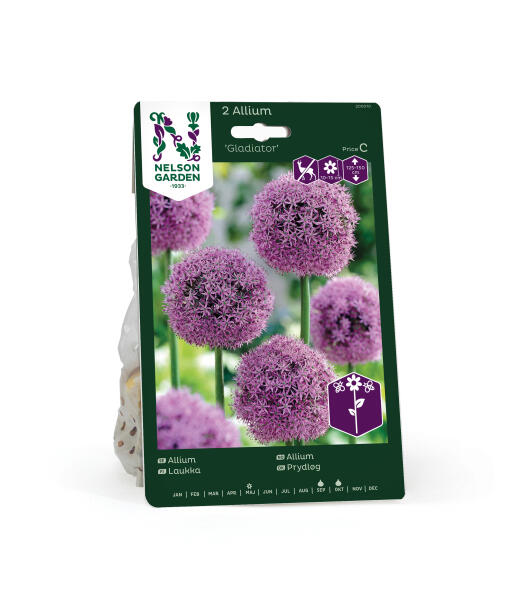Prydløken 'Gladiator' er mektig i hagen! De dekorative purpurrosa blomsterkulene er tette, kulerunde, 10-15 cm store og vaier statelig på de høye blomsterstilkene. Vakker snittblomst. Anses som mindre appetittlig for rådyr, hare, kanin og markmus.