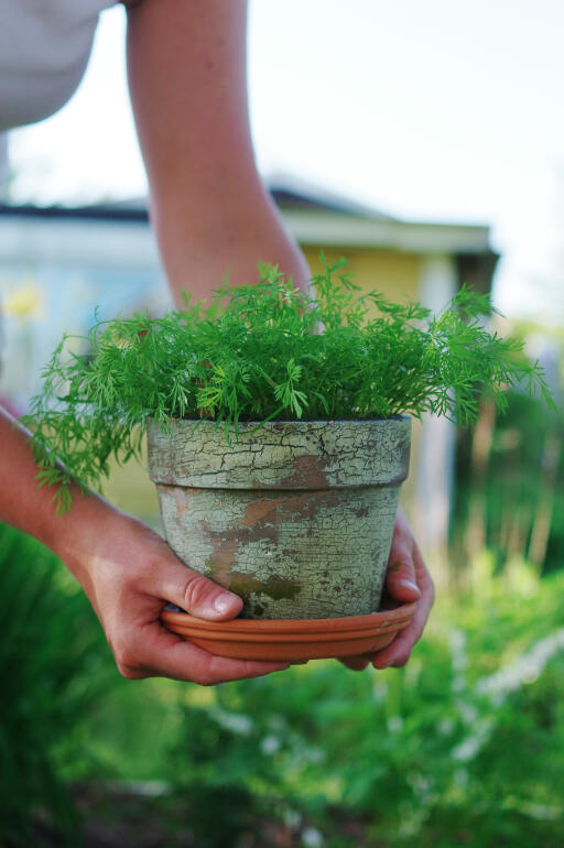 Så flere frø i små klynger eller tett i rader, direkte på vekstplassen eller i små potter for utplanting senere på våren. Dill liker gjødslet jord. Høst ved å klippe ned plantene. De vokser opp igjen og kan høstes en gang til.