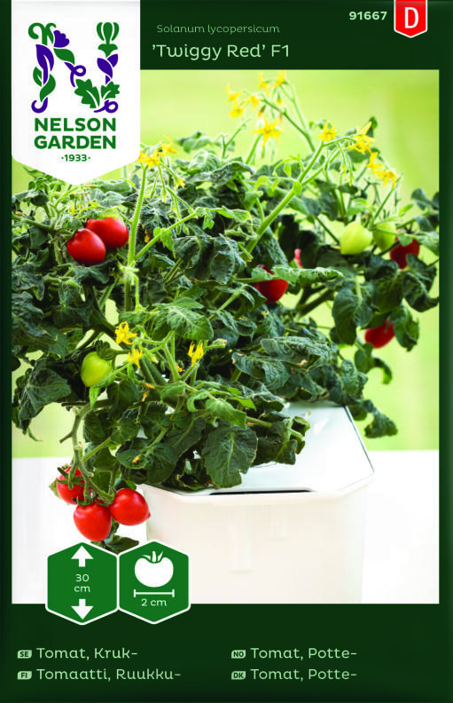 Pottetomaten 'Twiggy Red' F1 er en morsom tomat å dyrke på kjøkkenbordet eller i potte på balkongen eller i hagen. Herlig snackstomat for barn, siden de enkelt kan plukke den selv. Smaken gjør den anvendelig til mye.