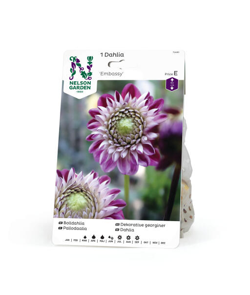 En helt ny sort! Denne georginen skifter fra sølv og mørkelilla fløyel til rosalilla silke. Når knoppen åpner seg vises kronbladenes sølvfargede bakside mot de mørke fremsidene, mens den fullåpne blomsten lysner til en vakker silkerosett.