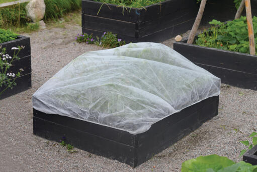 Fiberduk med innsydd strikk, tilpasset størrelsen til pallekarmer. Lett å sette på og ta av. Beskytter planter mot vind, sterk sol og insekter. UV-stabil. Av kraftig material. Polypropen 23g/m². Mål: 1,4 x 1,8 m