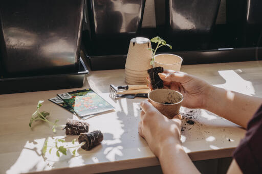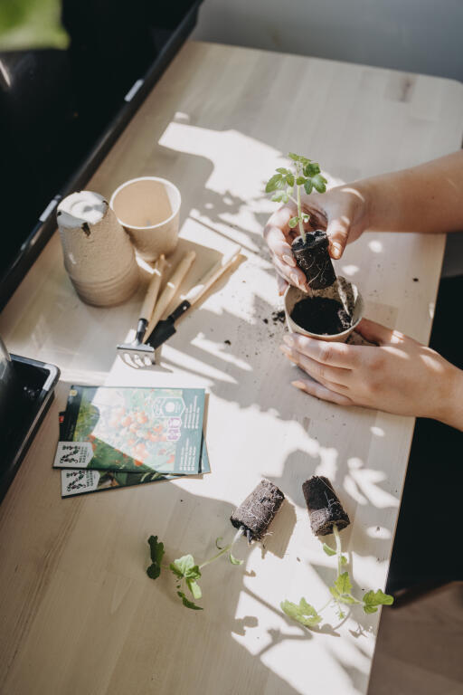 Med 3 minipluggbrett og 14 planteplugger
