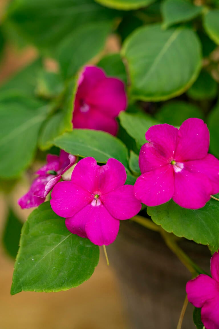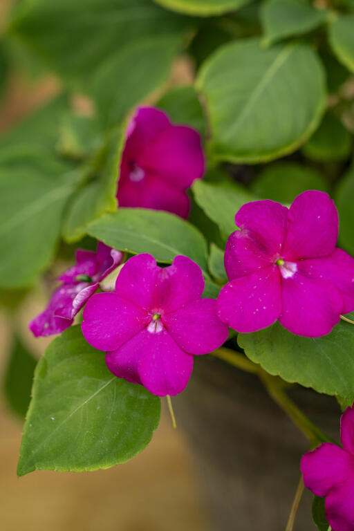 Riktblomstrende skjønnhet med store, vakre halvdoble og doble lilla blomster som minner om epleblomst. En ekte kjempe som er villig til å blomstre selv i skyggefulle omgivelser. Planten tåler en regnfull og kald sommer, men må tas inn før første frost. Fin potteplante. Trives i godt gjødslet løs jord, vann rikelig. Topp plantene for at de skal bli kraftige.