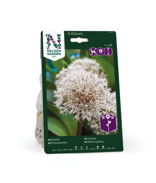 Luftige blomsterballer som kan bli opp til 15 cm store i en søt, blekrosa farge. Bladene er brede og vakkert grågrønne. En av de beste allium-sortene å plante i potte. Anses som mindre appetittlig for rådyr, hare, kanin og markmus.