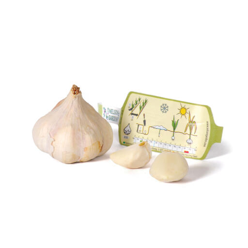 Dette er et økologisk hvitløk fra sørøstre Frankrike. En tidlig og pålitelig sort som tåler kulde godt, som får 8-14 store fedd med fyldig smak. Høst den fersk i mai og spis som den purre, eller i august og tørk den i flette. Softneck.