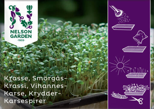 Velkjent, lettdyrket og vitaminrikt krydder. Brukes som pålegg og dekorasjon. Dyrkes innendørs året rundt.