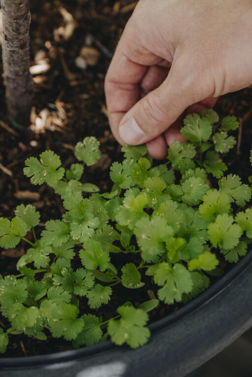 Økologisk frø. Koriander er en dekorativ krydderplante. Så i flere omganger for jevn tilgang og høst bladene etter hvert. Frøene høstes ved at hele planten klippes av og deretter henges opp ned for å tørke. Samle opp frøene og bruk dem som herlig krydder.