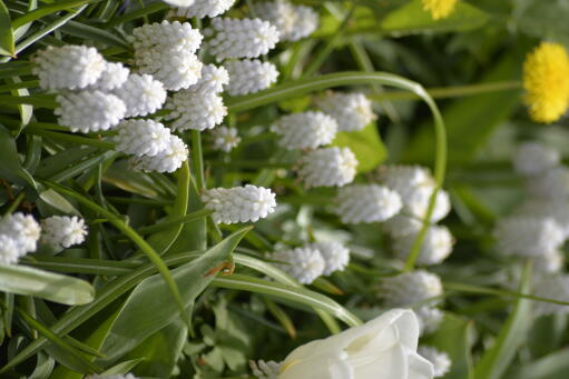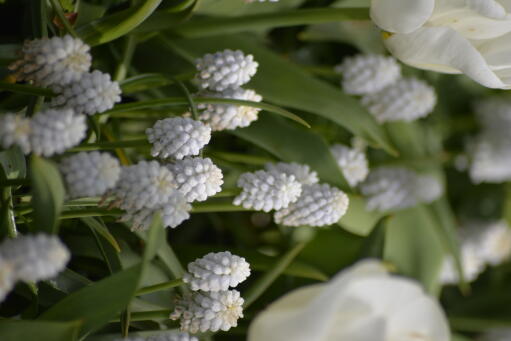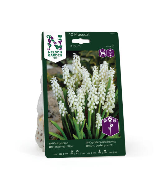 Klassisk perleblomst der blomstene er rent hvite. Sorten 'Album' er en meget gammel sort, som finnes omtalt allerede i 1596. Passer utmerket i bedet. Vakker å dyrke i potte sammen med f.eks. tulipaner fra gruppen Doble tidlige tulipaner.