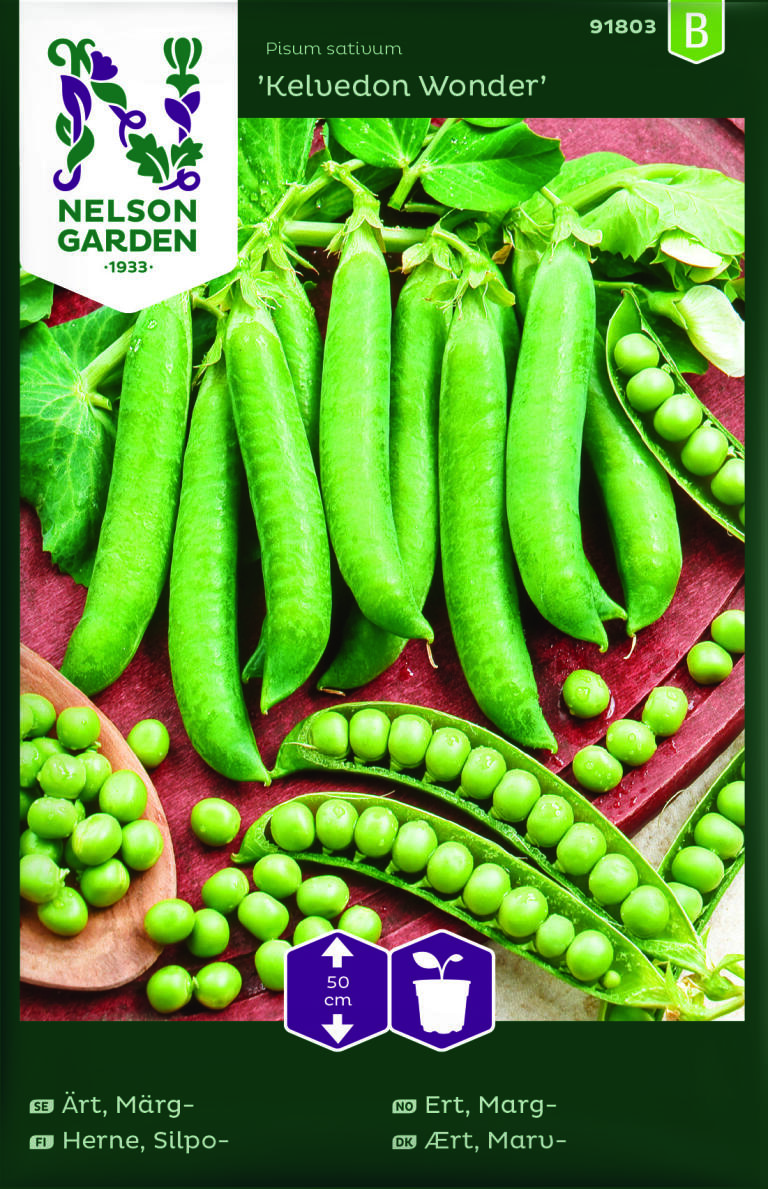 Margert som gir rikelig avling, 7-10 erter per belg. Kan trenge støtte. Høstes etter hvert, ertene tas ut av belgene. Dyrk gjerne erter på ulikt sted hvert år; de gjødsler jorden.