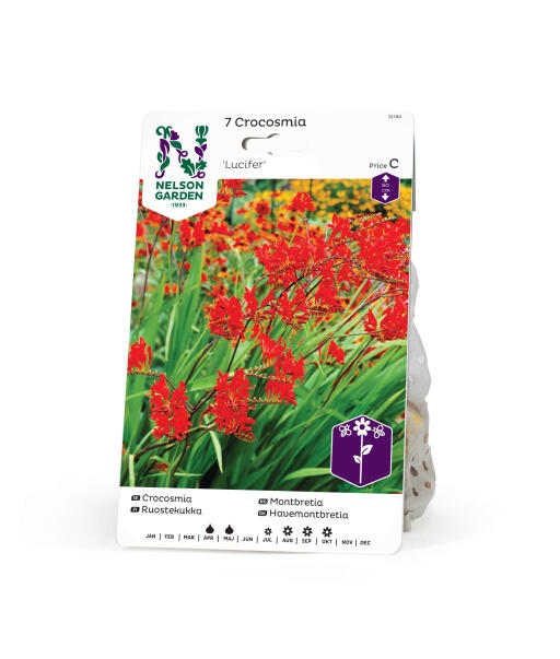 Meget vakker plante med eksotisk utseende. Rødoransje blomster langs 60 cm høye, stengler bøyd i bue om sensommeren. Til blandede bed med god gartnerjord. Veldig fin i buketter.