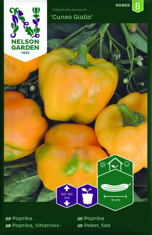 En herlig gul paprika med mild saftig smak. Dekorativ i salater. Fruktene kan høstes grønne, planten gir da større avling. Kan dyrkes bundet opp, slik som tomat eller som busk. Trives i næringsrik og porøs jord, vannes regelmessig. Ta bort det første fruktemnet for å få større avling. Dusj ofte, det forhindrer insektangrep.