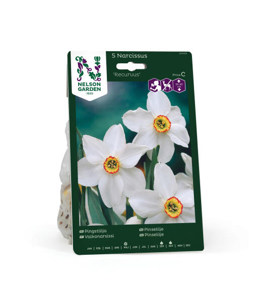 'Recurvus' er en klassisk duftende pinselilje. Blomstene har hvite, relativt smale kalkblader og en liten gul bikrone med rød kant. Sorten blomstrer relativt sent. Anses som mindre appetittlig for rådyr, hare, kanin og markmus.
