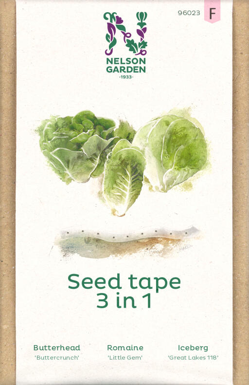 Tre såbånd for en frodig miks – en frodig kombinasjon av tre typer salat. La hodesalaten ’Buttercrunch’, isbergsalaten ’Great Lakes’ og romanosalaten ’Little Gem’ spille hovedrollen i din dyrking. Riv av en passe lang remse av såbåndet og legg den i såfuren. Vann grundig før såbåndet dekkes med 1 cm jord. Sørg for at ingen ender stikker opp (da kan fugler dra opp båndet). Dekk gjerne med en fiberduk for raskere spiring – fra 2 til 4 uker. Fortsett å holde sådden fuktig!