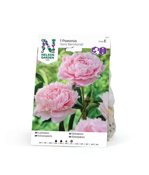 Klassisk hageplante av beste sort som bør finnes i alle hager. 'Sarah Bernhardt' har store, tett fylte, røde blomster og dufter herlig. Lettdyrket og bekymringsløs når den har fått godt feste. Kan trenge støtte.