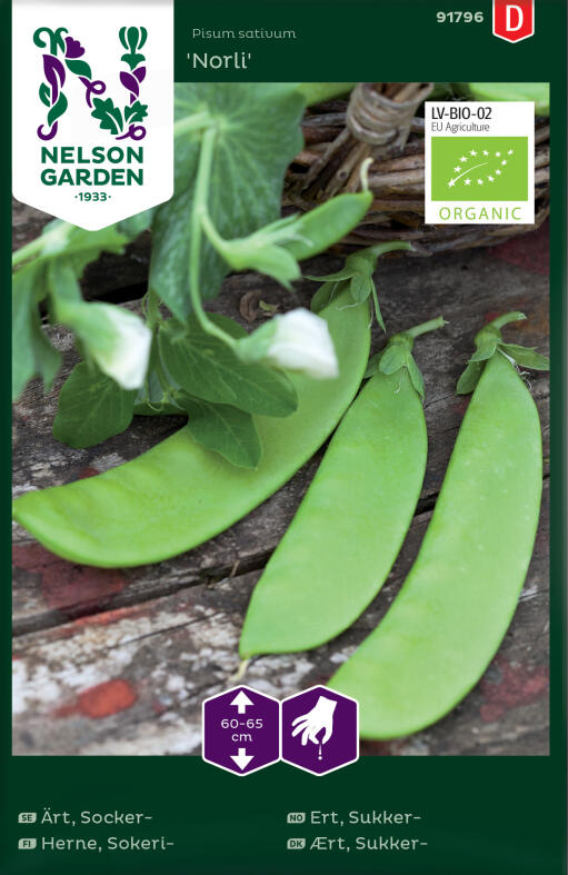 Lavtvoksende og hurtig sukkerert med små gode belger. Perfekt å så tidlig om våren i drivhus for tidlig avling. Blir bare 60 cm høy og trenger bare en eneste plantestøtte for å holdes oppreist.