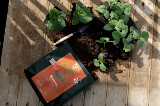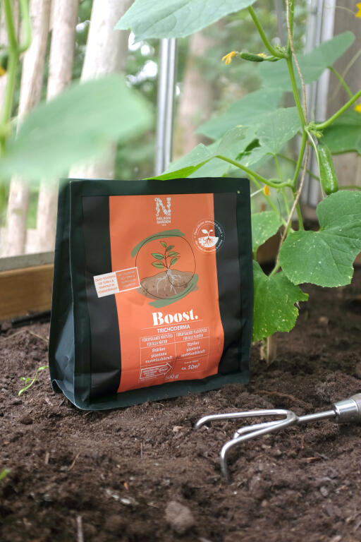 Bland 1 del Boost Trichoderma med 10 deler jord.
