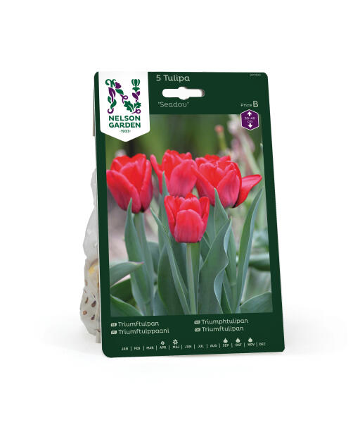 Kronbladene til denne tulipanen flammer vakkert i kardinalrødt. Triumphtulipanen er en riktig klassiker og blomstrer midt i tulipansesongen. Blomstene er relativt store og pleier å stå lenge. Meget fin som snittblomst.