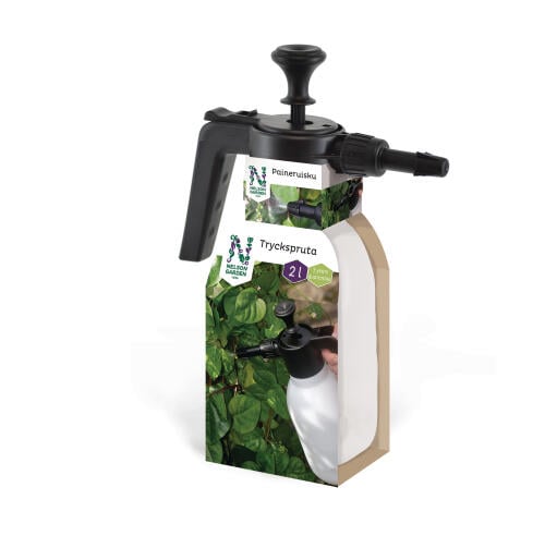 Trykksprøyte av høy kvalitet for vann eller plantevernmiddel. Beholder med nivåindikator, bryter som kan låses i åpen posisjon, og justerbar dyse for stråle eller vanntåke. 2 liter. 5 års garanti.