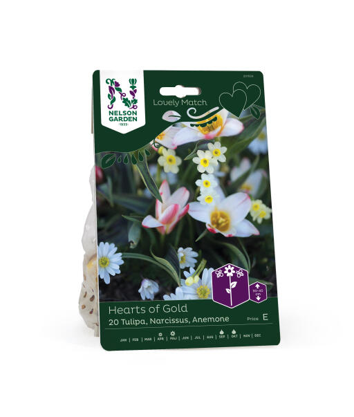 En søt miks av tulipan, narsiss og balkansymre for blomsterbed, potte eller kurv. Blomstenes ulike høyder, farger og former løfter og fremhever hverandre og felles for alle er deres gule midtre som åpner seg mot solen.