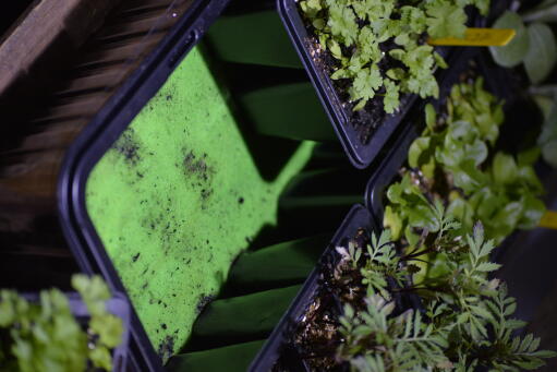 Med 3 minipluggbrett og 14 planteplugger