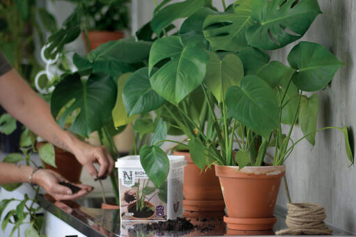 Biohumus er mild mot planterøtter og kan brukes på flere måter hele året. Vi anbefaler alltid å plante nyinnkjøpte inneplanter i ny jord blandet med Biohumus i en større potte. Dette for å gi potteplanten plass, næring og mikroliv.