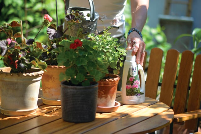 Bryt bort visne blomster etter hvert, så fortsetter pelargoniaene å blomstre. Sørg også for å gi dem næring hele sommeren frem til noen uker før du tar inn plantene for vinteroppbevaring.